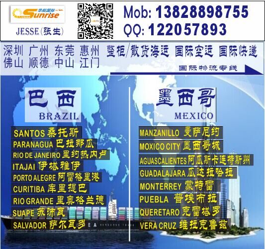 深圳东莞广州国际海运空运物流公司订舱热线:JESSE(张生)13828898755,QQ:122057893
