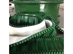 我公司生产的裙边带,挡板带,提升带等波浪形提升带易于设计成一整套系统的输送流水线,避免了间断输送和复杂的提升系统,此系统具有安装速度快,输送倾角大,大地面积小,布置灵活,维修量低,降低能耗等特点,所以在现代工业系统中独出一格,赢得青睐。